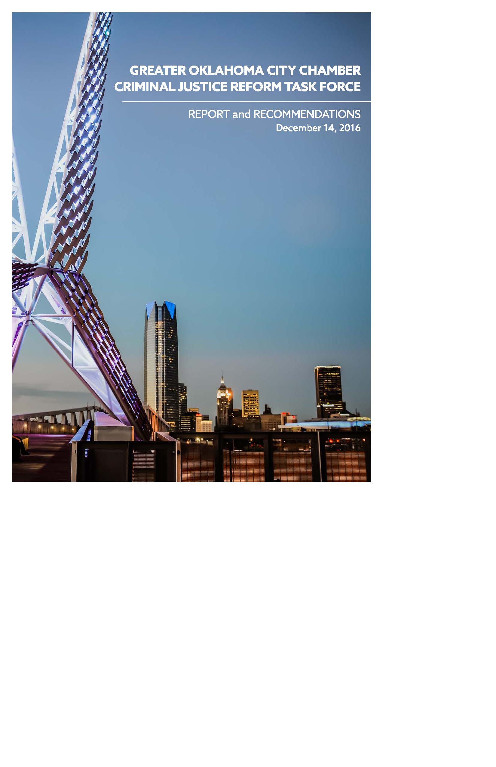 The Greater Oklahoma City Chamber’s Criminal Justice Task Force released a series of recommendations today designed to ease overcrowding conditions at the Oklahoma County Jail and improve the efficiency and effectiveness of the criminal justice system. The recommendations follow a year-long assessment of the various processes that affect the jail population, the decisions that drive these processes, and the costs associated with these decisions.